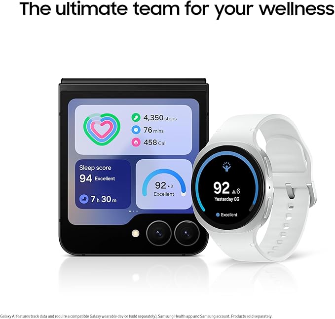 - HEALTH TRACKING COMES FULL CIRCLE: Take control of your health by marrying Galaxy Z Flip7 FE with Galaxy Ring. Designed for those on the go, Ring lets you comfortably keep tabs on your health with sleep tracking, Energy Score and Wellness Tips.
